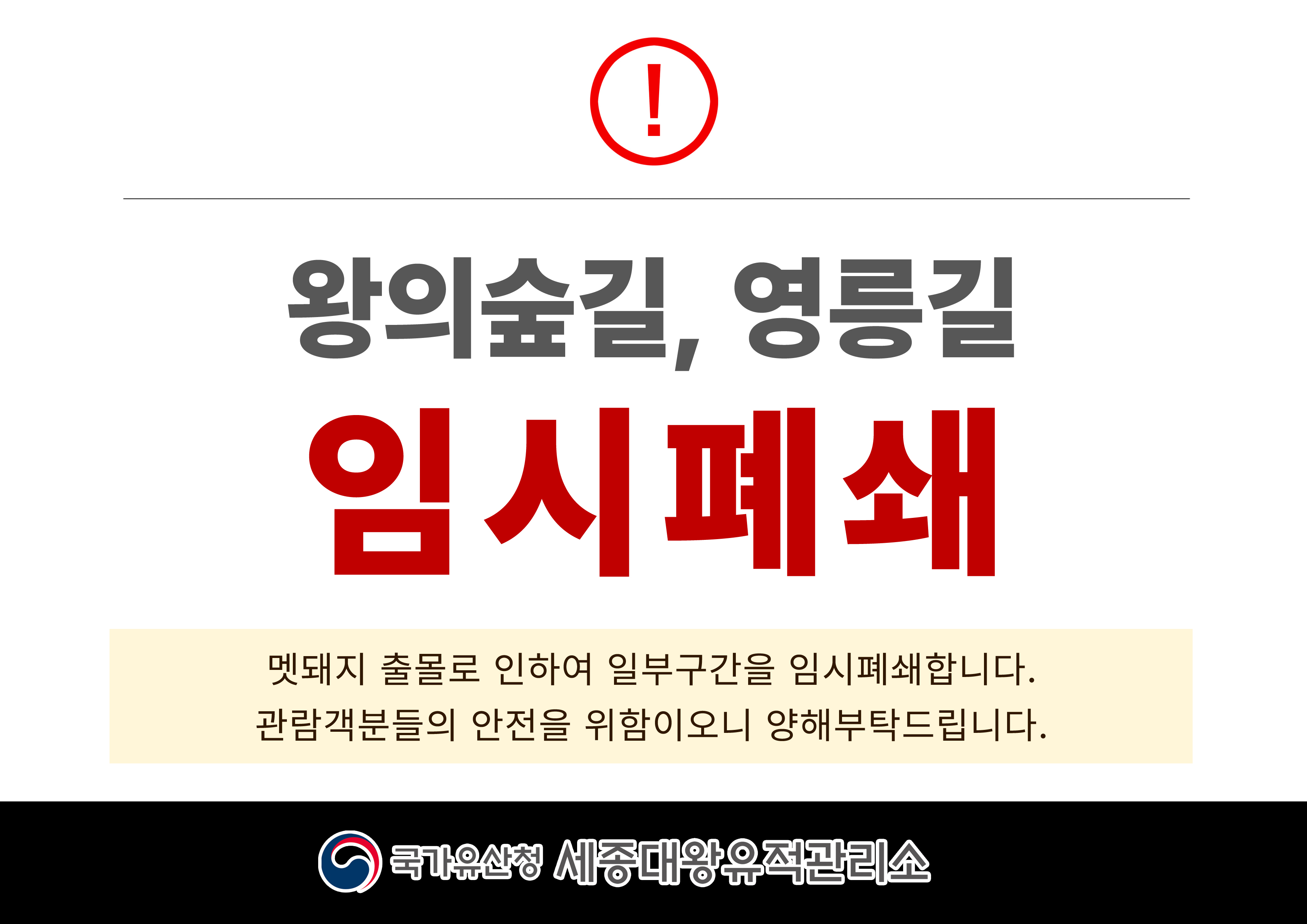 세종대왕유적관리소 왕의 숲길 및 영릉길 임시폐쇄(12.24)